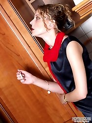 Smoking babe getting her pantyhosed booty worshipped by the old nylon freak